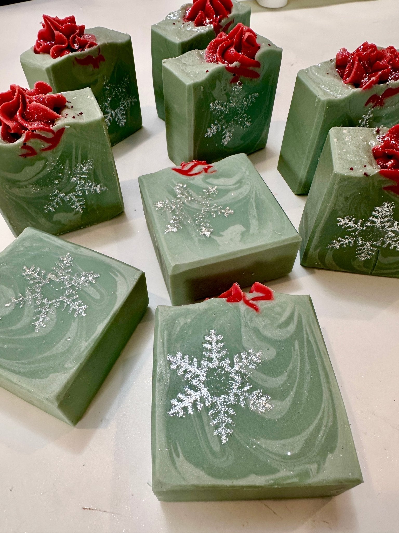 ❄️Merry Minis: Pequeños en tamaño, pero llenos de espíritu, nuestros Merry Minis son joyas navideñas artesanales, una celebración del aroma, el brillo y la magia de la temporada. Cada barra está adornada con detalles festivos, desde copos de nieve brillantes hasta ribetes, lo que los hace perfectos para regalar, para un ritual o para un momento de placer personal. Ya sea dentro de un calcetín navideño o junto al fregadero, te invitan a descubrir un poco de lujo y a disfrutar de la alegría de la temporada.